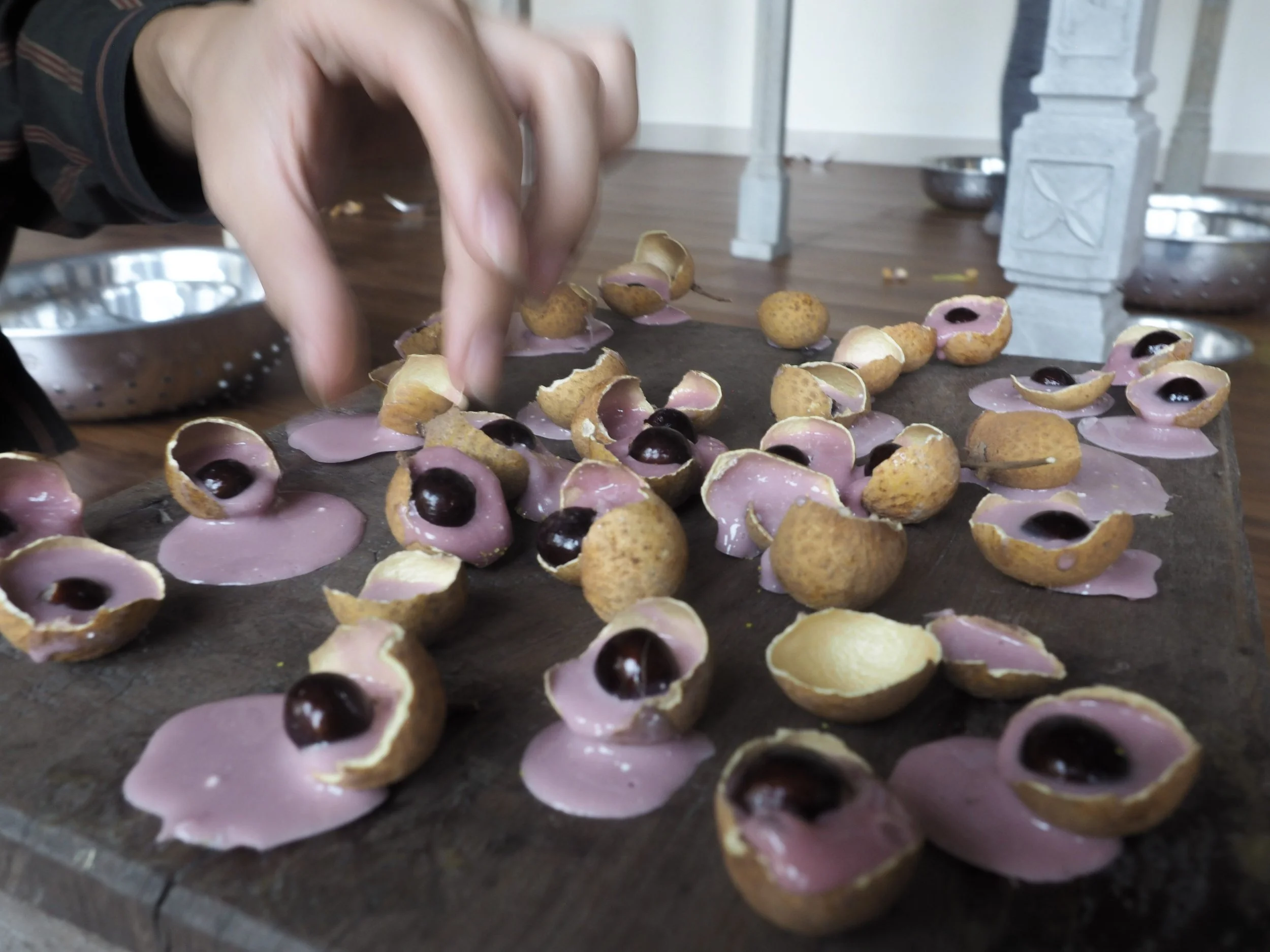 During her residency in Huế, Việt Nam, Anh Dao researched ‘am,’ small outdoor altars integral to Vietnamese spiritual life. These modest structures, often found in gardens or roadside spaces, honor ancestors, spirits, and local deities, blending daily life with sacred traditions.